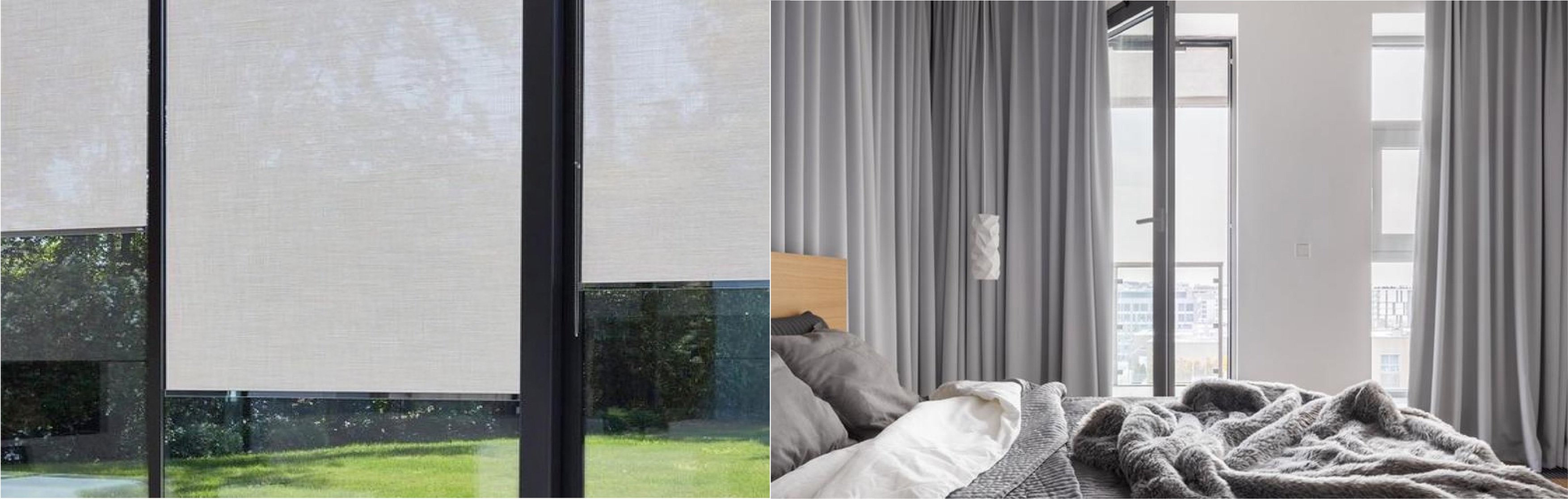 - ห้องนอน การเลือกม่านสำหรับห้องนอน ควรจะเลือกม่านที่ทึบแสง หรือ ม่านม้วนแบบ Dimout เพื่อป้องกันไม่ให้แสงเล็ดลอดเข้ามา ให้คุณได้นอนหลับและพักผ่อนอย่างเต็มที่ แถมยังช่วยป้องกันความร้อนจากแสงแดด ทำให้ภายในห้องคุณไม่รู้สึกร้อนจนเกินไป สำหรับสีของผ้าม่านควรจะเลือกเป็นสีเข้มๆ เช่น สีน้ำตาล สีดำ สีน้ำเงิน แต่ถ้าไม่อยากได้ห้องนอนทึบจนเกินไปอาจจะเลือกเป็นผ้าม่านสีสว่างอย่าง สีขาว สีครีม แต่ถ้าใครกลัวห้องจะร้อนก็อาจจะเลือกเป็นม่าน 2 ชั้น หากมีแสดงแดดส่องเข้ามาไม่มากก็ให้เก็บผ้าม่านหลัก ก็แล้วใช้แค่ม่านรองด้านในกันแดด